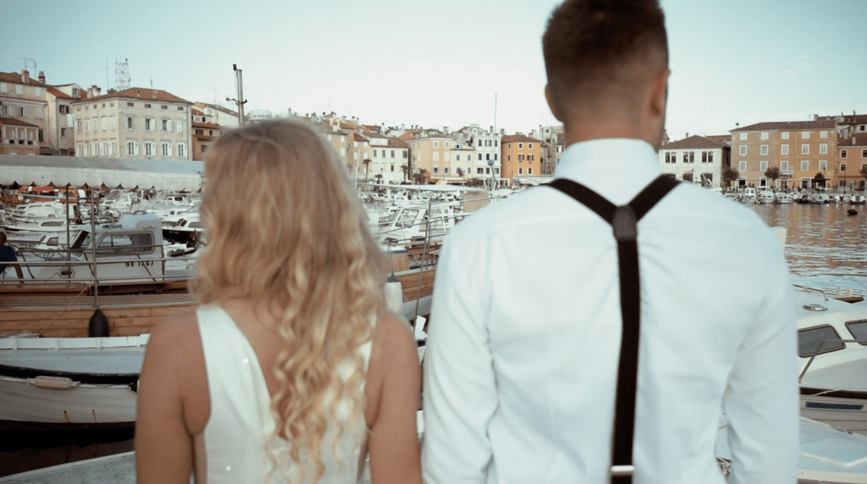 Eszter mindig is tengerparti esküvőt szeretett volna a családdal, Laca viszont itthoni nagyobb lagzit barátokkal és bulival. Így jutottunk erre a kompromisszumra, hogy mindenképpen lesz egy tengerparti kreatív fotózás és videó aztán pedig egy itthoni esküvő. Így a fotók köszönőajándékként szolgáltak, a videót pedig meglepetésként levetítettük. Sokan megkönnyezték, köztük mi is, pedig mi nem először láttuk.